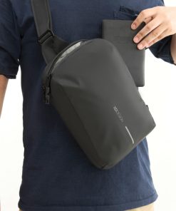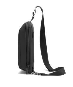 The Urban Sling is a versatile vertical cross body bag, designed for everyday essentials. This sling features an L shaped wide opening maincompartment with an expandable section, providing easy access to essentials. With its anti theft design and Twist Lock Zipper Puller, it keeps your belongings safe. It has ample capacity to hold an 8 inch iPad mini, wallet, passport, and various small items. The rear pocket is perfect for discreetstorage of cash, cards and valuables. Combines water repellent, durability, and style. The sling is Made from soft touch coating Rpet fabric with theAWARE ™tracer. With AWARE ™, the use of genuine recycled fabric is guaranteed. 17% recycled content. Registered design®