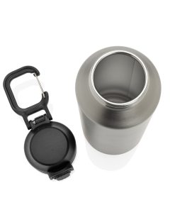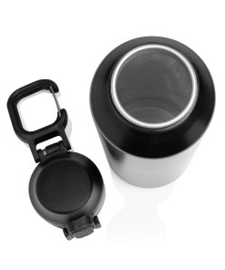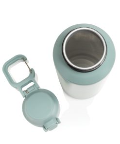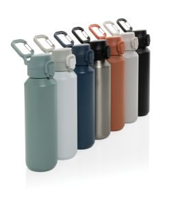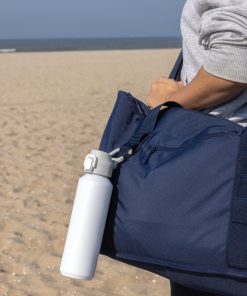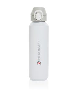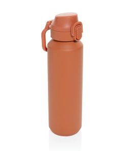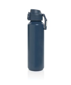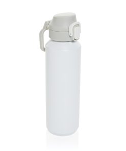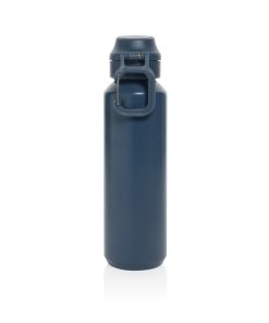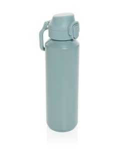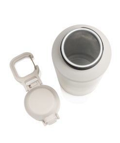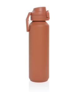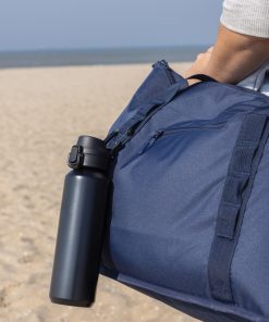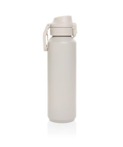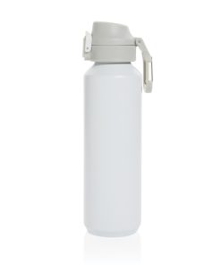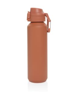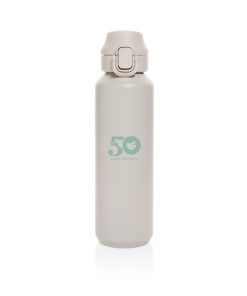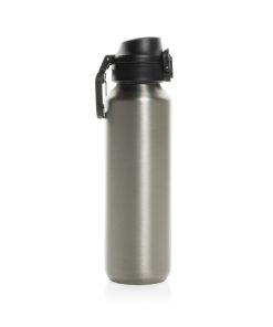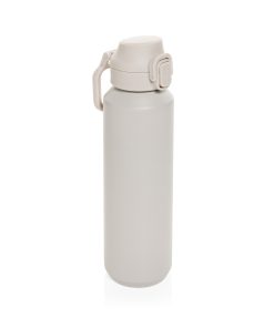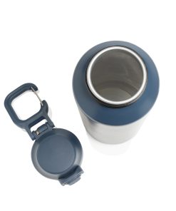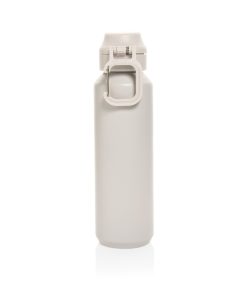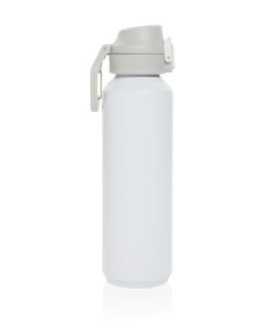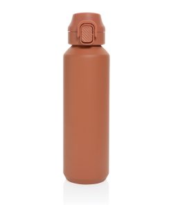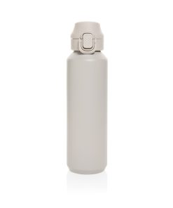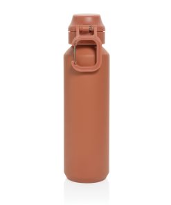 The Via RCS bottle is made from certified recycled 304 steel. This waterbottle features single-wall construction with a unique screw-on and lockable leak-resistant lid. Single hand operation. Press to open the lid for easy sip. Can be used for cold drinks only. Hand wash only. Made with RCS (Recycled Claim Standard) certified recycled materials. RCS certification ensures a completely certified supply chain of the recycled materials. Total recycled content: 73% based on total item weight. BPA free. Bulk packed. 600 ml. capacity