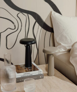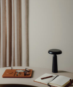 A compact lamp with a modern design that adds both character and style. Made from metal and recycled ABS. The lamp features a touch function on the top to switch between warm light, white light and warm white light. It is rechargeable via USB-C (cable included) and provides up to 8 hours of illumination. Certified by RCS (Recycled Claim Standard), RCS certification guarantees that the entire supply chain of recycled materials is certified. The total recycled content is based on the overall product weight. This product contains 7% RCS certified recycled ABS.