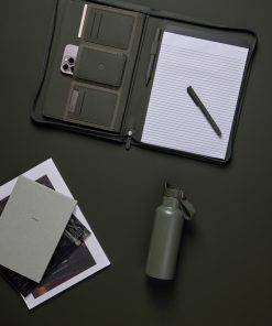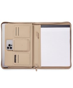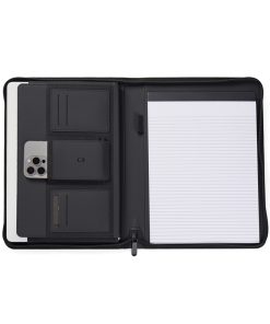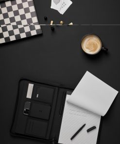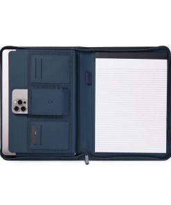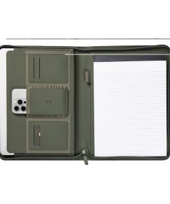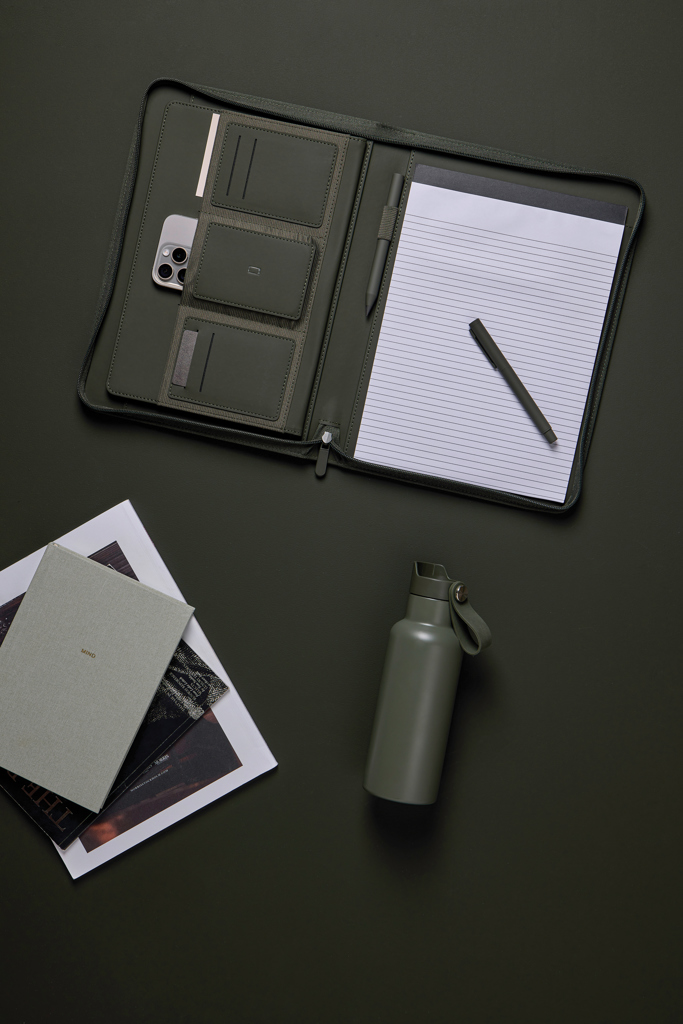 Stay organised and carry your important essentials with this sleek A4-sized portfolio. Featuring a pen holder, a pocket for paper, elastic band pockets for cards, phone, along with a notepad containing 20 lined pages. Made from partly recycled polyester, with the classic Baltimore matt PU coating, this portfolio is the ideal accessory for your desk or for taking on the go. The paper insert is replaceable, ensuring long-lasting use. Certified by RCS (Recycled Claim Standard), RCS certification guarantees that the entire supply chain of recycled materials is certified. The total recycled content is based on the overall product weight. This product contains 6% RCS certified recycled polyester.
