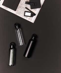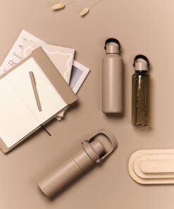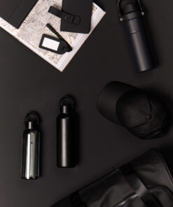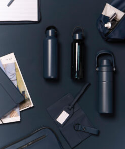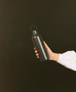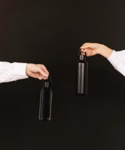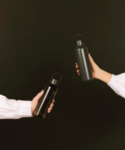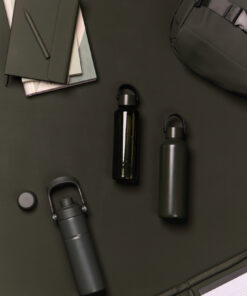 This double wall vacuum bottle, crafted from RCS certified recycled stainless steel, offers both performance and style. Designed with a minimalistic PU handle and black details that capture the essence of Baltimore series. The double walled insulation maintains drink temperatures cold for up to 12 hours, and hot for up to 6 hours, whether you need to stay cool with a chilled drink or enjoy a warm beverage on the go. Not dishwasher or microwave safe, only handwash. Certified by RCS (Recycled Claim Standard), RCS certification guarantees that the entire supply chain of recycled materials is certified. The total recycled content is based on the overall product weight. This product contains 80% RCS certified recycled stainless steel.