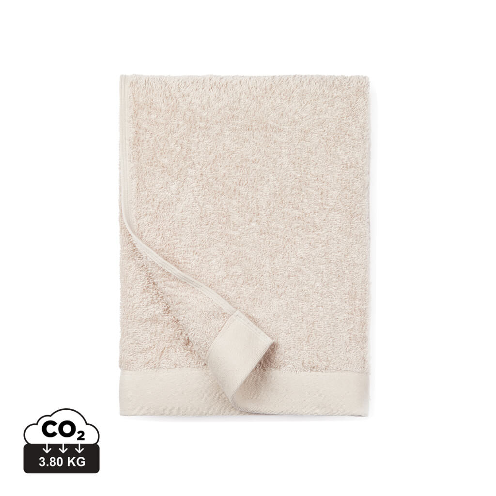 A towel set with 68% cotton and 32% Tencel. Tencel is a natural fibre obtained from certified forests. The process is as energy and chemically efficient as is currently possible. This blend produces a cool, soft and durable fabric with a solid feel, and, on account of the Tencel blend, it has excellent absorbency. The cotton used for this product range is BCI certified; BCI is an initiative designed to help cotton farmers transform their farming methods from conventional to more sustainable farming. Produced in a colour scheme of earth tones in a variety of sizes.