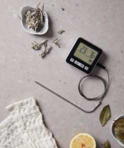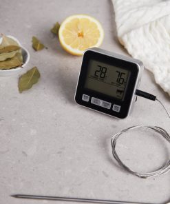 Serve the perfect meal with this handy cooking thermometer. Whether you’re roasting succulent roast beef or baking a special cake, this feature-packed thermometer will prove invaluable in the kitchen, whether you are oven cooking, grilling or baking. Timer function and alarm function help you stay in control. The thermometer also displays Celcius and Farenheit so you can adjust it to suit your needs. No kitchen is complete without one.