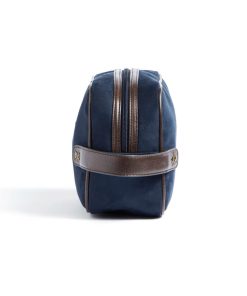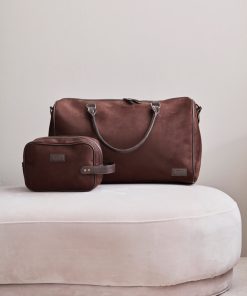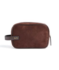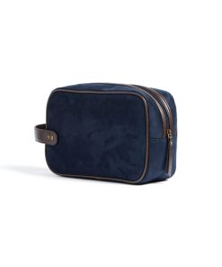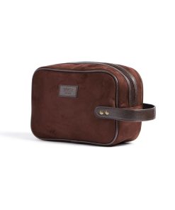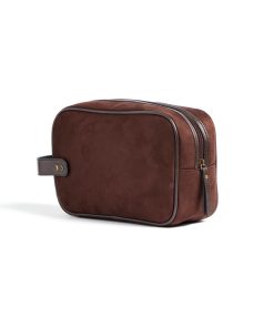 Classic yet modern washbag in suede imitation with details in PU leather. The bag makes it easy for you to store your hygiene items in style, both at home and during travel. The bag comes in a handy size and is easy to carry, thanks to a strap with brass details on the short side.