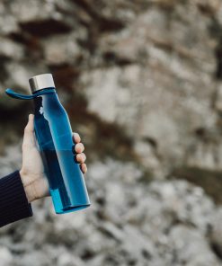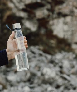 Water bottle made from BPA-free RCS certified recycled PET. With a generous 800 ML capacity, this bottle is ideal for workouts, travel, or whenever you need extra hydration. The loop doubles as a convenient handle, perfect for carrying on the go or hanging on exercise equipment. The ideal shape allows it to fit in most cup holders. Exclusively suitable for cold drinks. Handwash only. Certified by RCS (Recycled Claim Standard), this certification ensures that the entire supply chain for recycled materials is verified. The product contains 68% RCS certified recycled PET.
