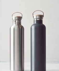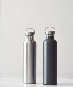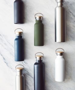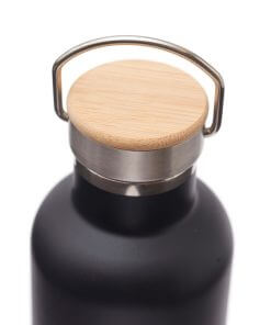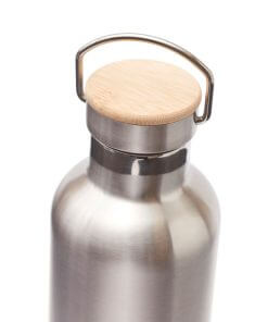Miles thermobottle has a smart vaccum isolation to keep water ice cold for up to 18 hours and hot for 6 hours. The bottle is produced in 18/8 steel and the lid has a hanger and wood decoration. It contributes in preventing single use plastics. 1L content.