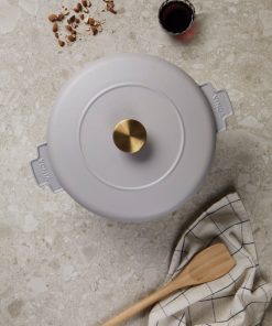 Experience the Monte Heritage Series’ Cast Iron cocotte, a timeless addition to your kitchen. Crafted from solid cast iron and coated with enamel in sober colours. With its French bistro-feel and brass-coloured knob, it adds a touch of sophistication to any culinary space. Designed for secure handling, the pot features sturdy handles, ensuring safe and comfortable maneuvering. The slightly more textured interior gradually develops a non-stick patina, simplifying cleaning and enhancing cooking performance. Thanks to cast iron’s excellent heating properties, this pot is perfect for slow cooking and simmering. Compatible with all hob types, including induction, the Monte Heritage pot offers versatility for various cooking methods. A cast iron cocotte, if properly taken care of, will last for many years and can be handed down through generations.