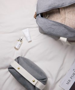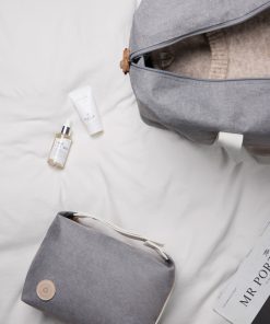 Elevate your travel essentials with this simple yet stylish toiletry bag. Crafted from RCS certified recycled polyester with contrasting details, this bag combines practicality with a refined design. The top handle, secured with a snap button, doubles as a convenient hanging loop. A smooth zipper at the top provides easy access to the main compartment, while the open inner pocket keeps your essentials organised. RCS (Recycled Claim Standard), RCS certification guarantees that the entire supply chain of recycled materials is certified. The total recycled content is based on the overall product weight. This product contains 24% RCS certified recycled polyester.