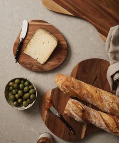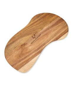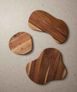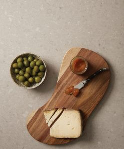 Serving board crafted from FSC-certified acacia wood. The organic shape and angle-shaped edges make it easy to grab the board from a flat surface. Each board is unique, featuring its own distinctive grain pattern and natural colour variations. Perfect for presenting cheese, crackers, fruit or other delicious snacks. To keep them looking as good as new for years, we recommend washing them by hand.