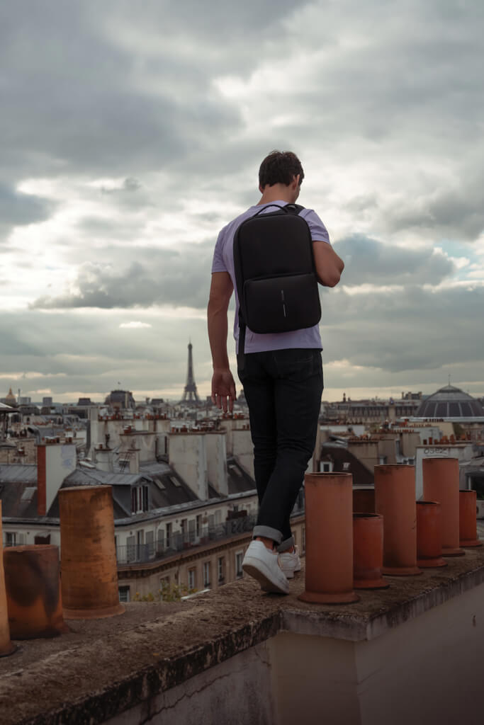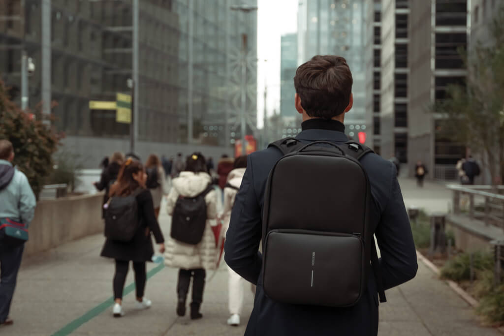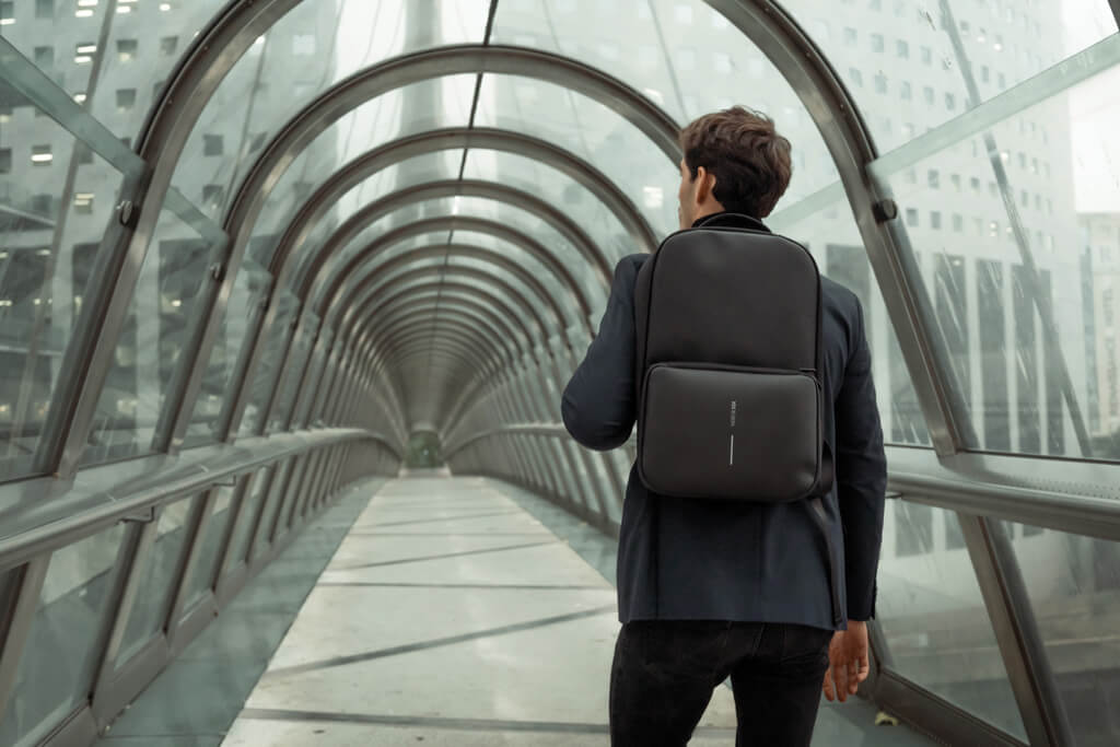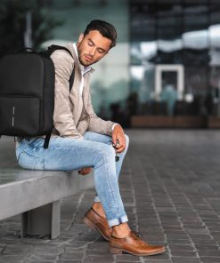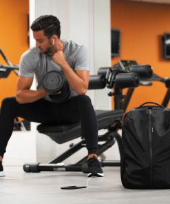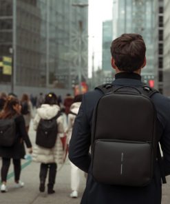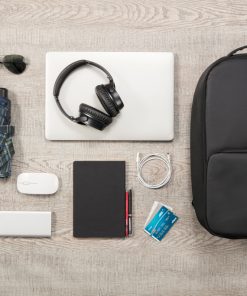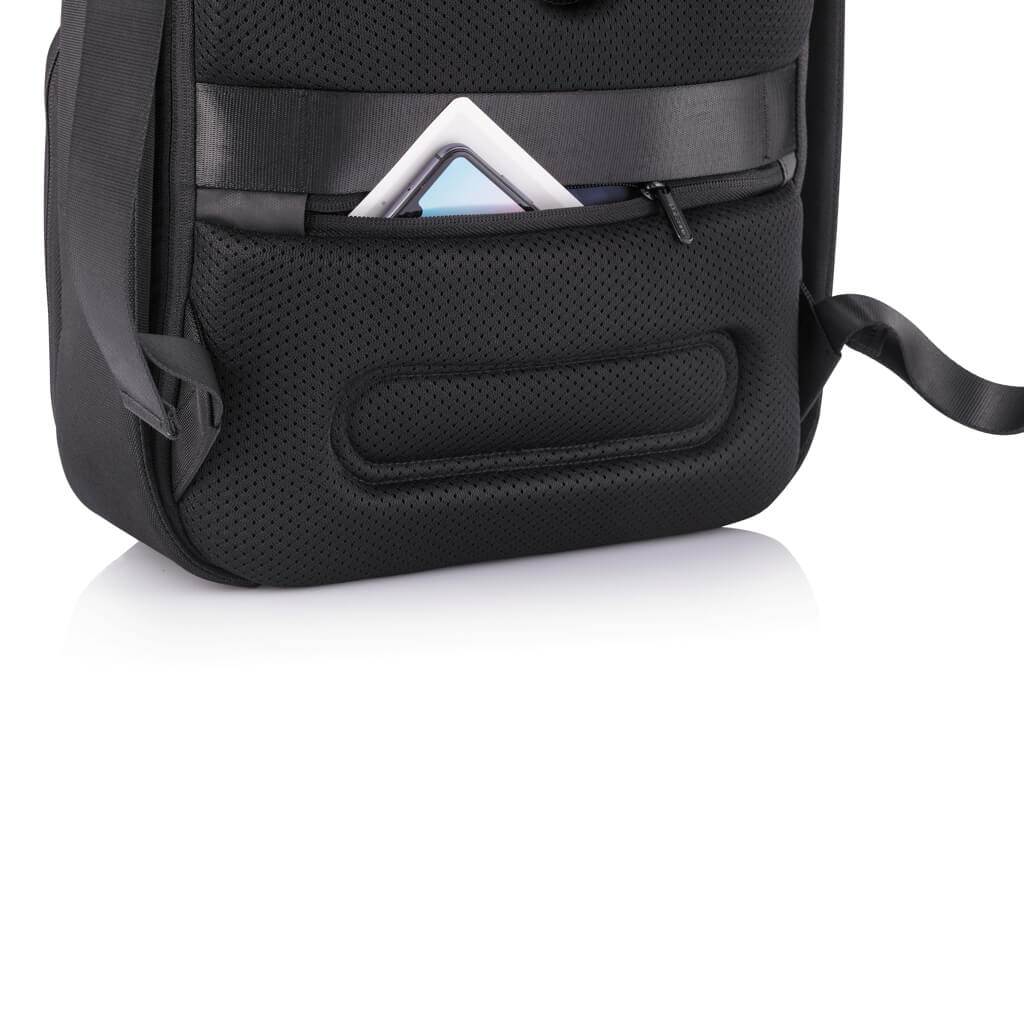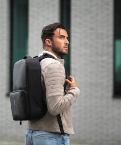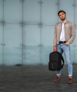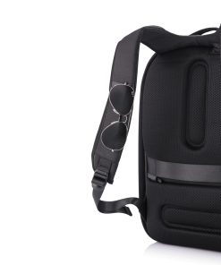 Flexible and practical, the XD Design Flex Gym bag is the first business backpack and gym bag all in one. Quickly convert this backpack from business to gym style, just expanding the front pocket, from 16 to 24 Litres.The anti-theft design with no front access and hidden zippers in the main compartment will ensure that you carry your professional devices securely. With the RFID protected pocket on the back you can safely store your wallet, cell phone or credit cards. Additionally, this backpack keeps you powered with a fast USB charging port on the shoulder strap where you can also find a sunglasses holder. Made from RPET materials with AWARE™ technology – using 53 recycled water bottles that would end up in landfill or oceans and saving 31 litres of water during the production process. The perfect backpack whether you are on your way to work, university or the gym. Registered design®