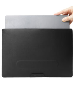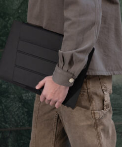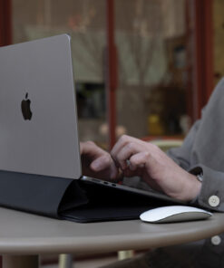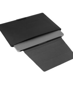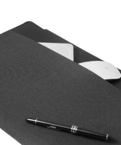 The Mobile Office Laptop Sleeve offers both protection and comfort with its innovative design, transforming into a laptop stand that provides a 4cm incline for improved ergonomics and better laptop heat dissipation. Its rear pocket for slim essentials like phones or notebooks provide efficient storage. A sleek, functional solution for the modern professional on the go. Crafted with AWARE™, the use of genuine recycled fabric is guaranteed. XX% recycled content. Registered design®